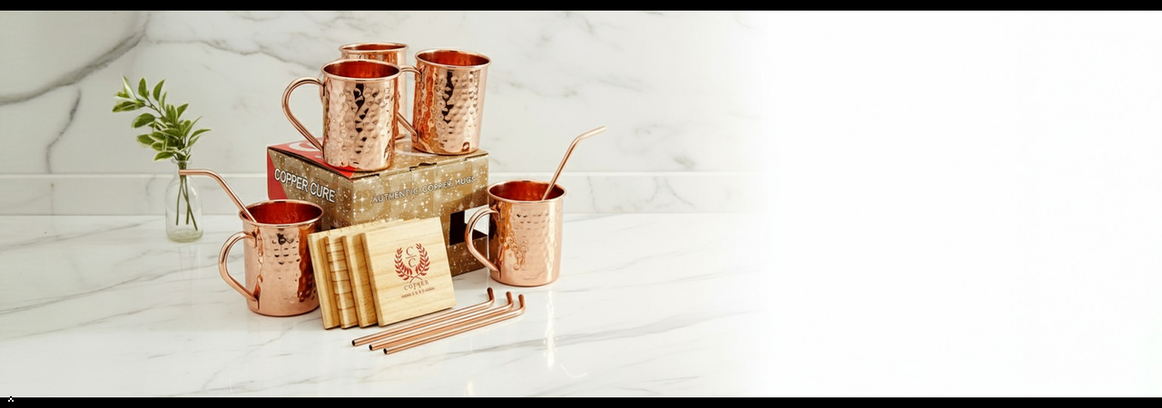 (Gift Box) Copper Mugs - Set of 2-100% HANDCRAFTED – Pure Solid Copper Cups - Comfortable Thumb Rest Handle - BONUS Copper Straws and Coasters